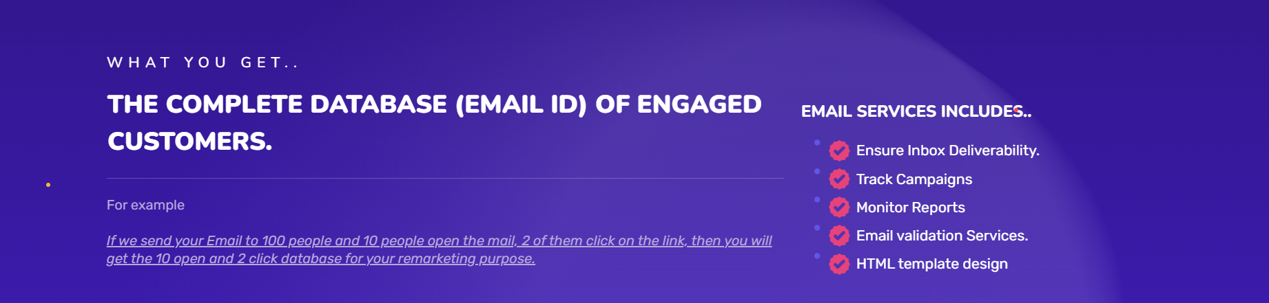 We at Online B2B Marketing are a team of Digital Marketers having expertise in Email Marketing with our USP being Landing the email in the client’s Inbox. Landing in the inbox is the 1st step toward a successful Email campaign.